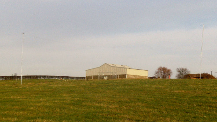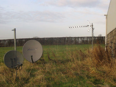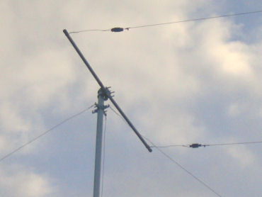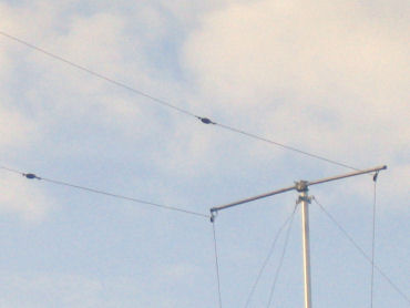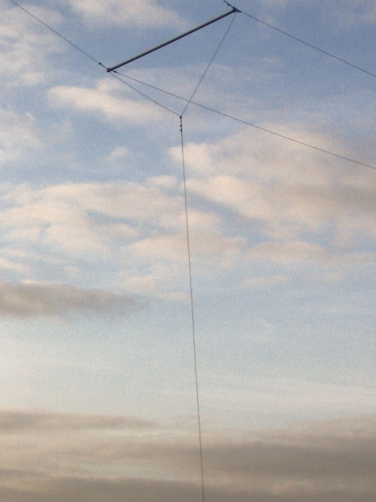 | Michael's photos show what could be assumed to be a temporary installation: a T-antenna slung between two fairly lightweight metal poles. |