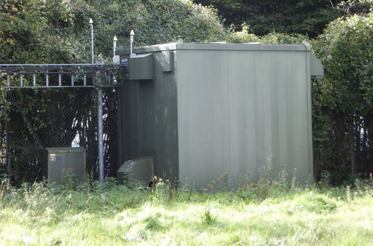 | Although the structures are prominent, the ground-level equipment is well screened by trees |