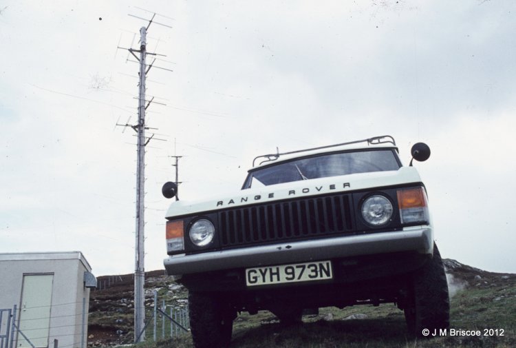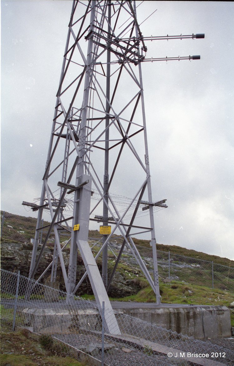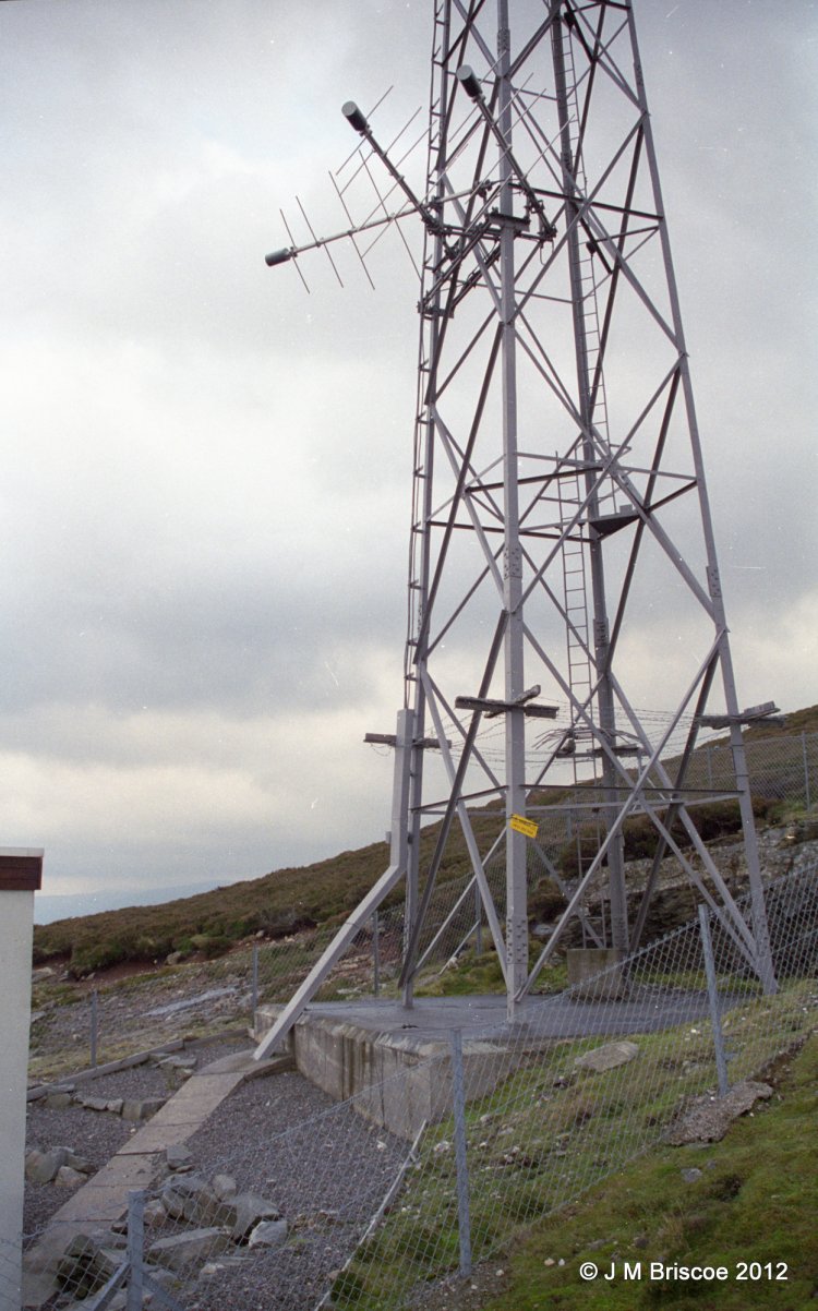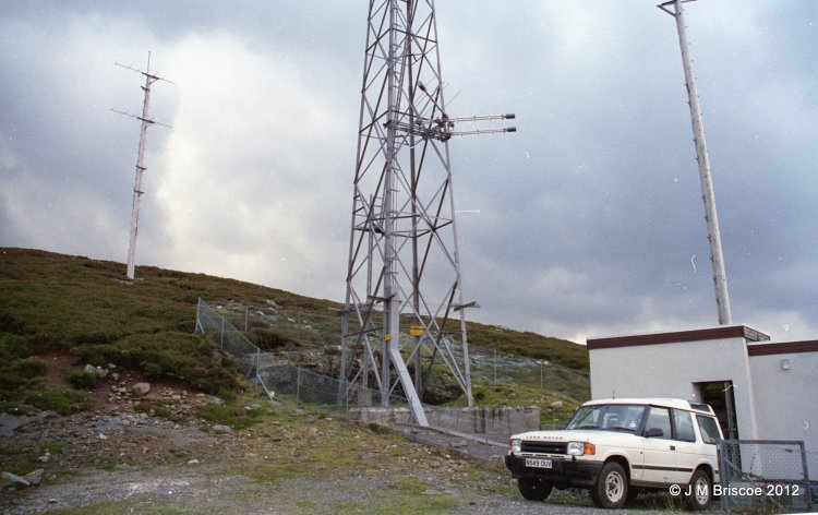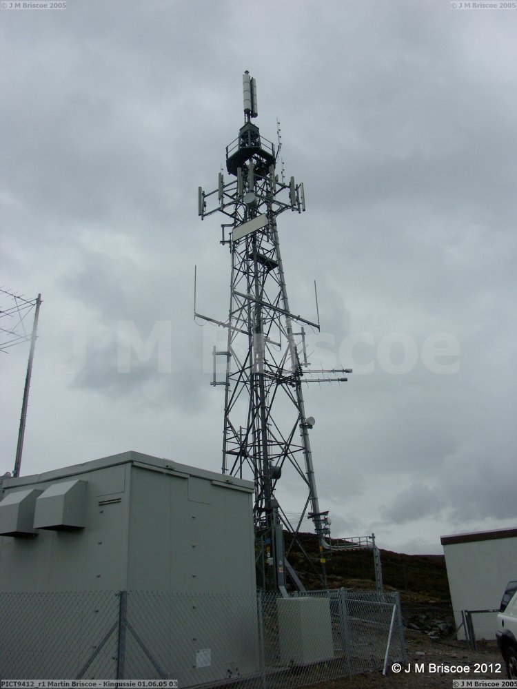 | KIngussie was originally a low power Band I and Band II site - EP7/506 and EP7/5. Service date 19th December 1966. The track did not go all the way to the site, there was an existing track which ended below the site and then you either carried equipment up to the building or if lucky drove up the side of the hill. There were steps up to the site with a handrail. There were separate wooden poles for Receive and Transmit. The tower was built for the UHF TV, (service date 28th July 1978), I think that initially the transmit antenna were left on the pole but a Band II transmit antenna was put on the tower once Band I had closed. The track was extended up to the site at that time. The Transmit pole remained for some time, probably because it was too much hassle to remove. |