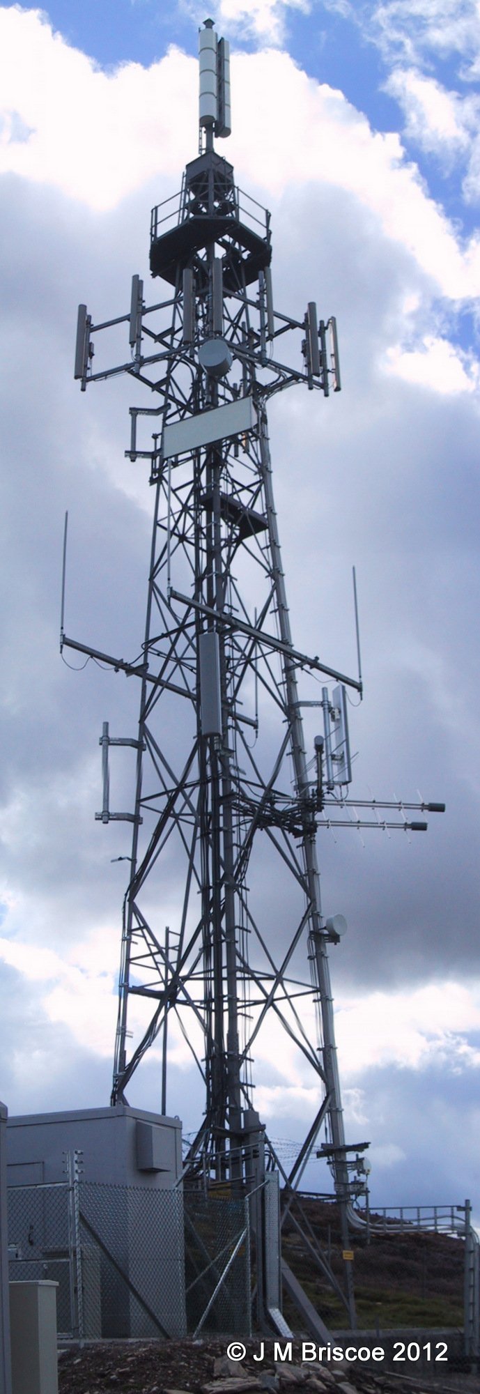 | Date unknown. UHF extension and tower have been built. Band I must have closed because antenna removed from pole. Band II antenna on tower. Track built up to the site. |