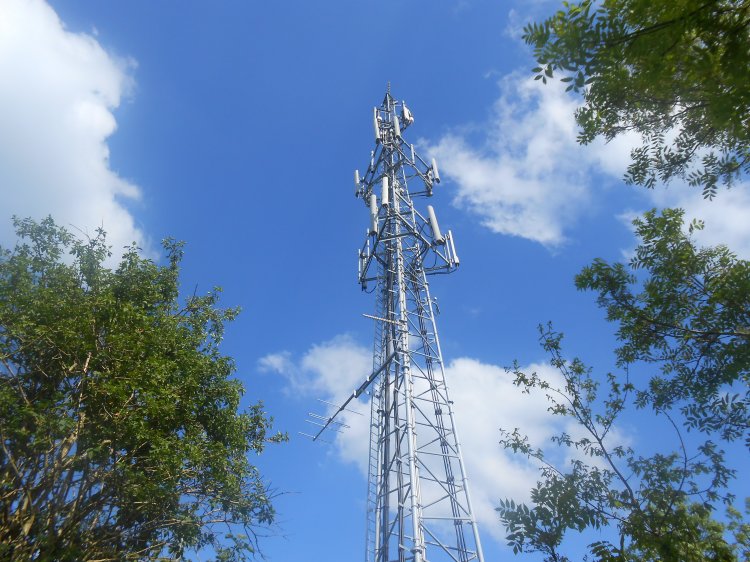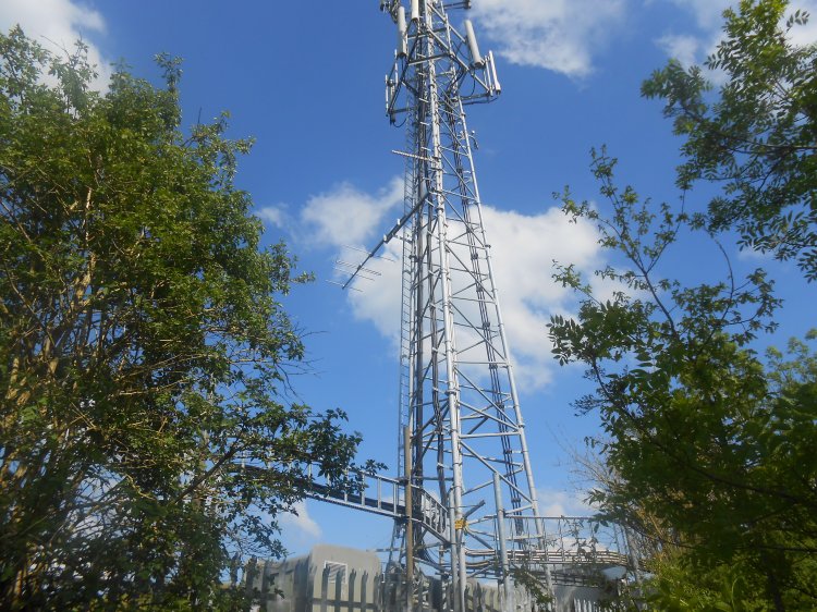 | A shot of the whole tower. The VHF receive aerial is very easy to spot, pointing East towards Wrotham. |