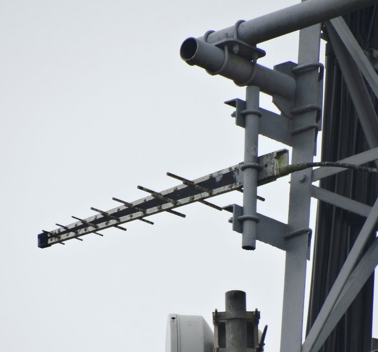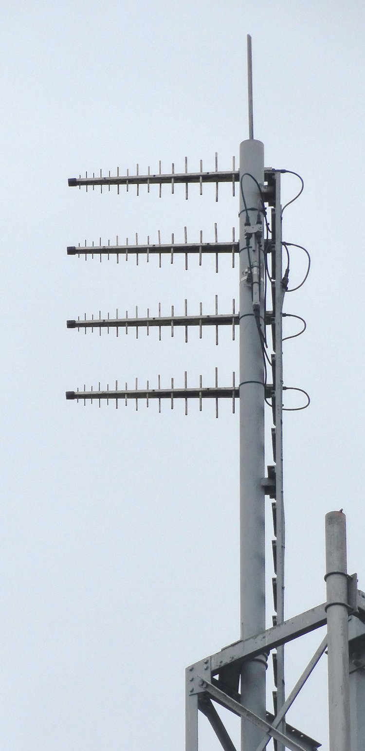 | Four log periodics for transmit. I estimate that they are pointing east towards inland areas of the town. |