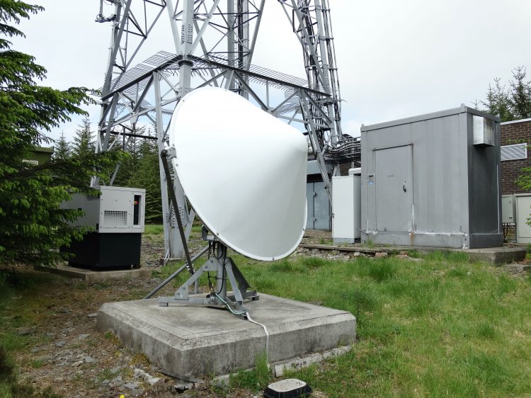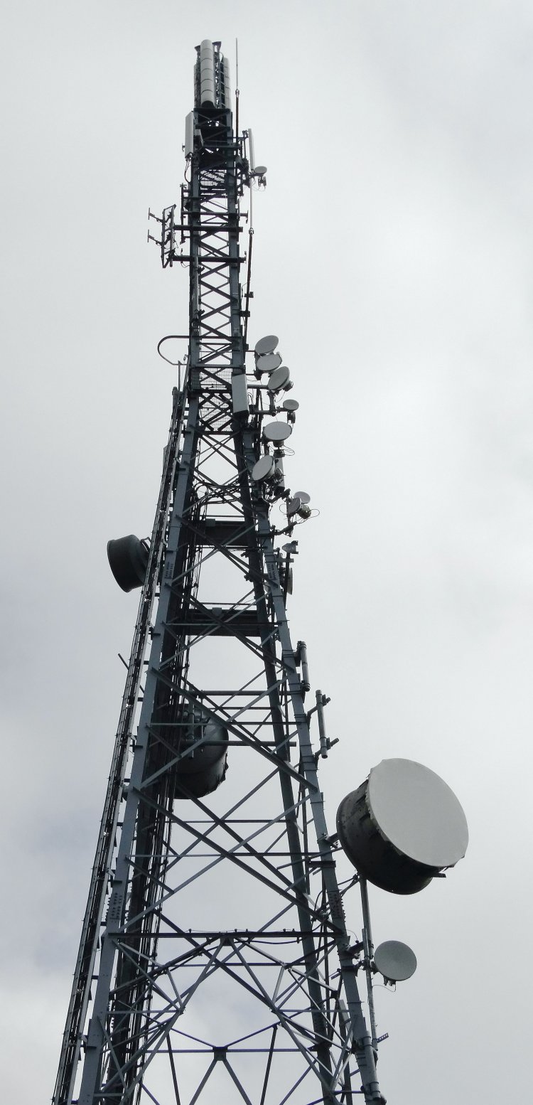 | Round the other side of the tower is another large SHF antenna. Lower right. This is likely to have been the transmit antenna facing Knock More for the BBC programme feeds. |
