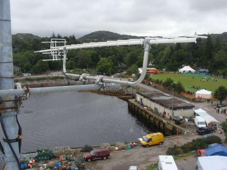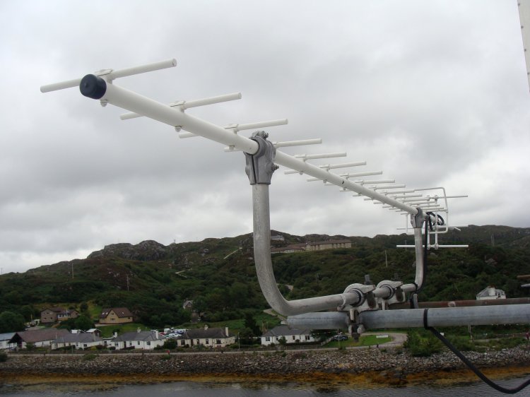 As I was dragged rapidly across the roof past the transmission site (at one point grazing my shin on a dangerously located Health and Safety notice) I was able to snatch a few shots of the aerials. I used a fast shutter speed because of my rapid movement, which necessitated a large aperture. This is why the depth of field is restricted, slightly blurring the background, and I apologise for this shortcoming. Photographically and physically it was a challenging assignment. After the close-up shots of the site it was all downhill, really. A big thanks to the Lochinver Rifle Association for helping me lose altitude so rapidly (you were a bit too efficient there guys, to be honest). Thanks also to the RAF Air-Sea Rescue (cheers you guys, I know you didn't mean what you said!) and another big thanks to the Lochinver Snorkel Club for retrieving the camera! The card was intact, and of course MB21 will replace the camera, maybe with a better one. And special thanks to Inverness Royal Infirmary, which strapped up my ribs and splinted my legs with scarcely any acidic comments about the rashness of my behaviour. So, all things considered, a successful MB21 mission. |