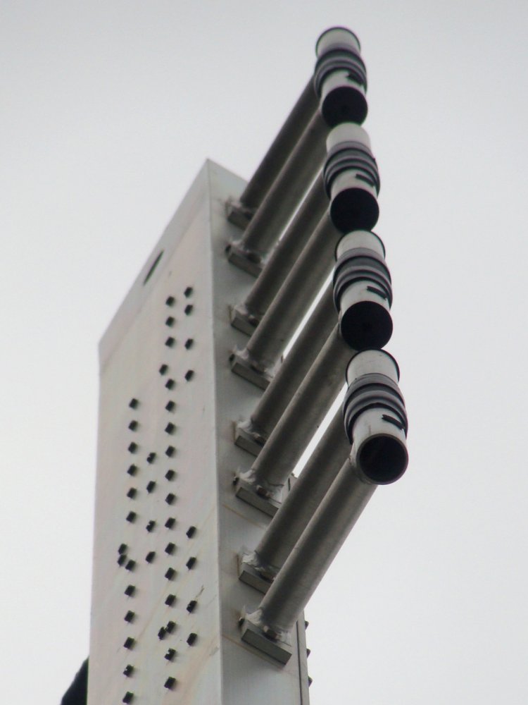 There was a tricky moment when the balloons suddenly encountered the airflow over the giant ice making machine and were thrown sideways (and were therefore out of shot). I was almost directly below the transmission site at that moment. Despite being dragged violently upwards and sideways I had the presence of mind to use flash, since otherwise the shot would have been little more than a silhouette. |