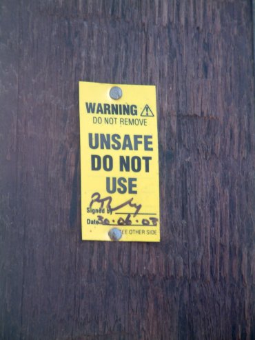 | At the time of Andy's visit - probably early 2005 - the pole was marked as "Unsafe"... |