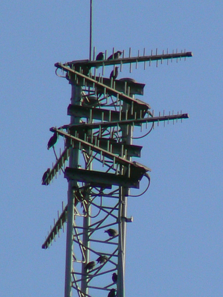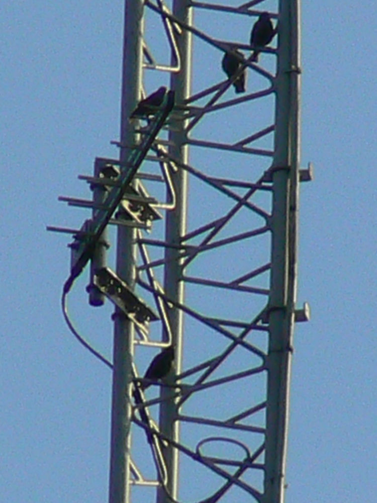 Behind houses on Ingersley Road is triangular lattice tower. This may be also seen better from Mill Lane which runs behind it. The tower seems to be a favourite for the local birds!