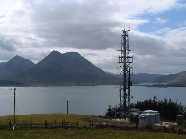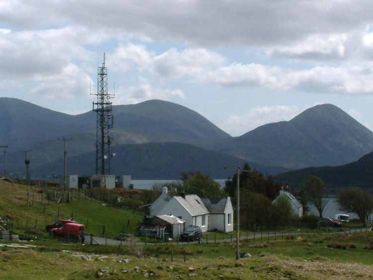 The trouble with island transmitters is that coastal areas of the island tend to be over the radio horizon. Skriaig, on Skye, is a good example. It serves most of the island - and the surrounding islands and the nearby areas of the mainland - very well, but a lot of the island's east coast is completely screened from the transmitter by intervening high ground. So the capital of Skye, Portree, has its own little transmitter at Penifiler, and on the neighbouring island of Raasay the Inverarish transmitter receives signals from Skriaig and sends them back to the thin line of habitation along the east coast of Skye. Inverarish serves a long stretch of Skye coastline, and by some miracle is in the one place where there is line-of-sight all the way along narrow Loch Sligachan to the famous Sligachan Hotel.