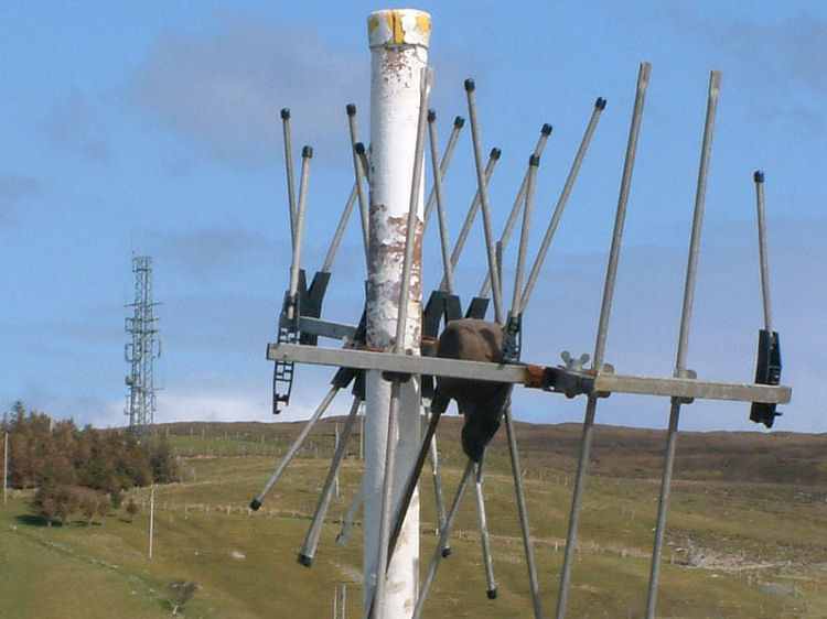 At Inverarish the broadcast signals are received by a log periodic mounted only about three metres above the ground, but why not? - Skriaig is clearly visible and there is little chance of interference at this remote location. Inverarish entered service in the mid 1990's. |