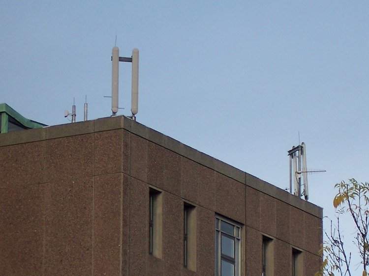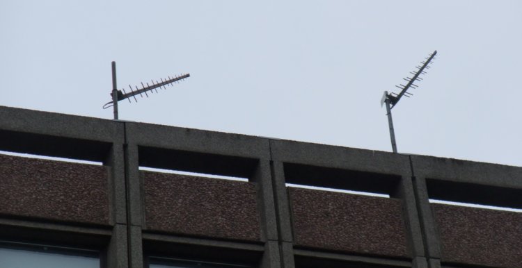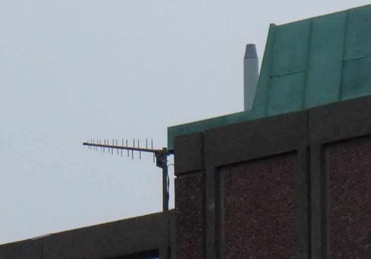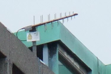 | Robert submitted the original photos with the comments: "We found the Canongate relay. I happened to look up at the roof of a building and spied a log periodic, then a second! I couldn't see the receive antenna but I assume it's a horizontally polarised log pointing at Craigkelly. There are a few buildings in the area with aerials pointing towards the relay but most are tall enough to just get Craigkelly with high gain aerials." Dan Glover visited in August 2009, found some more logs, sent off the photos, but felt there was still something missing. A further visit to Edinburgh in June 2011 has finally allowed the detail of the site to be completed. |