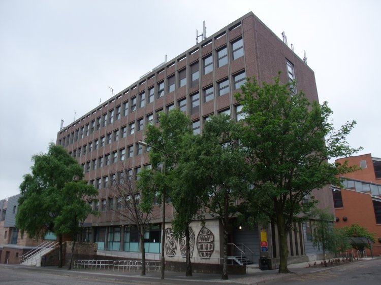 | The site is on the roof of a six-storey block from the 1960s, now part of the University of Edinburgh |