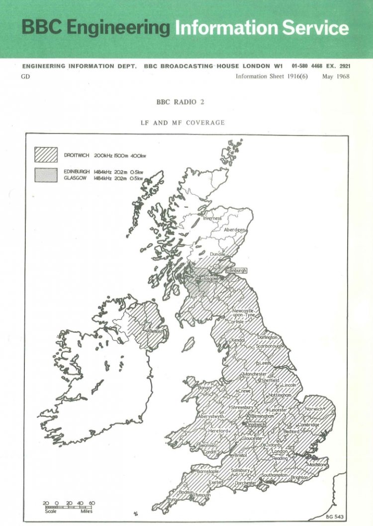 So from 1969 to 1978 the Edinburgh station was used for both Radio 3 on 647 kHz with 2 KW, and Radio 2 on 1484 kHz with 2 KW.
