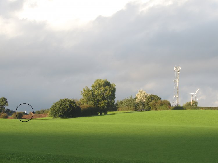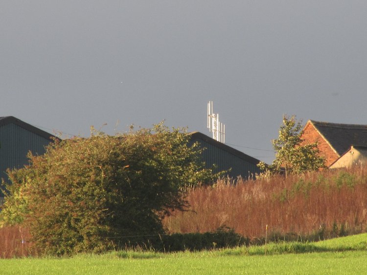 | The obvious site here is the mobile phone tower on the right. This is what I thought was the TX, until I noticed something shining in the sunlight... |