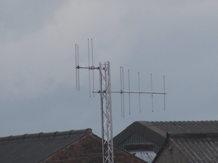 | The transmit aerial is the one on the left, the receive being the one on the right. This points roughly north east, up the Dove Valley to Ashbourne Radio's main transmitter at Windmill Lane in Ashbourne. The transmit aerial is pointing south west to Uttoxeter. Transmissions from this site are very directional to the west, probably to protect the other 101.8 Ashbourne Radio transmitter in Wirksworth. Indeed, the best signal from this site is along the A50 corridor, until this is interference limited by Cross Rhythms Radio in Stoke-on-Trent, also on 101.8. Quite a busy frequency in this area! |