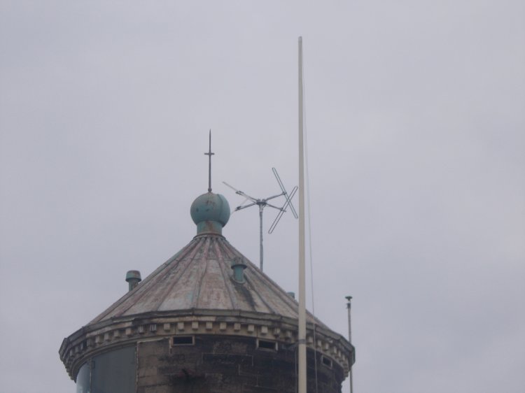 | The antenna system is what looks like a Skymasts Lindenblad antenna becoming more common in community radio. |