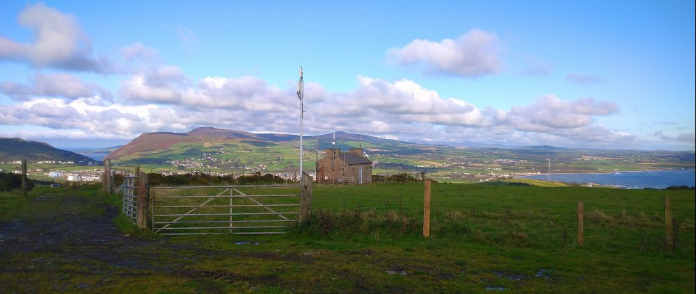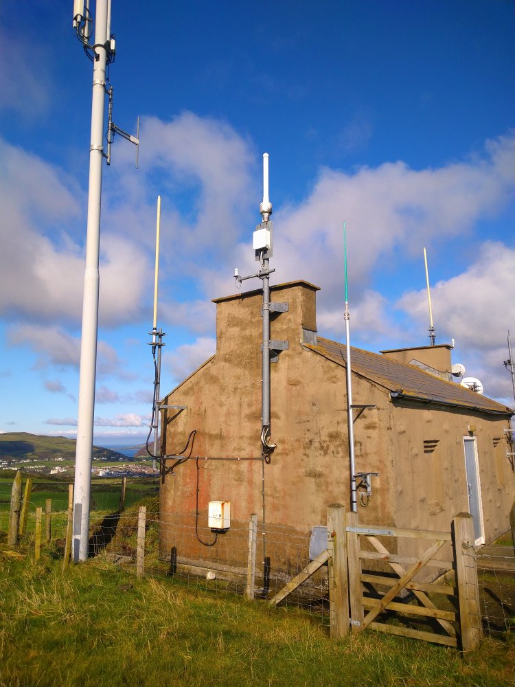 | General view of the site. The Arqiva site at Port St Mary can be seen in the distance, to the right of the building. |