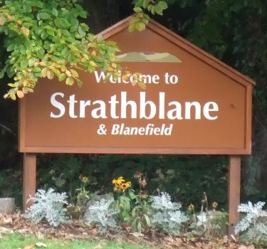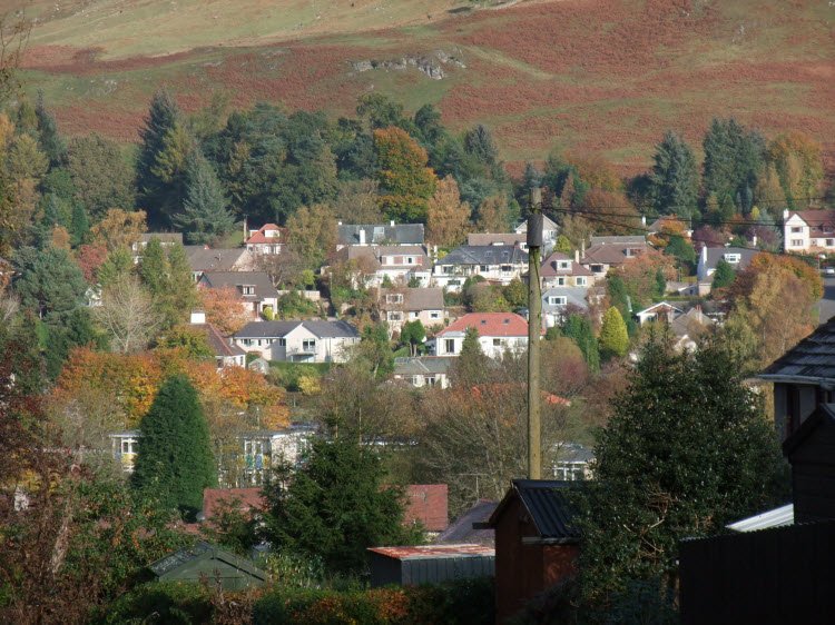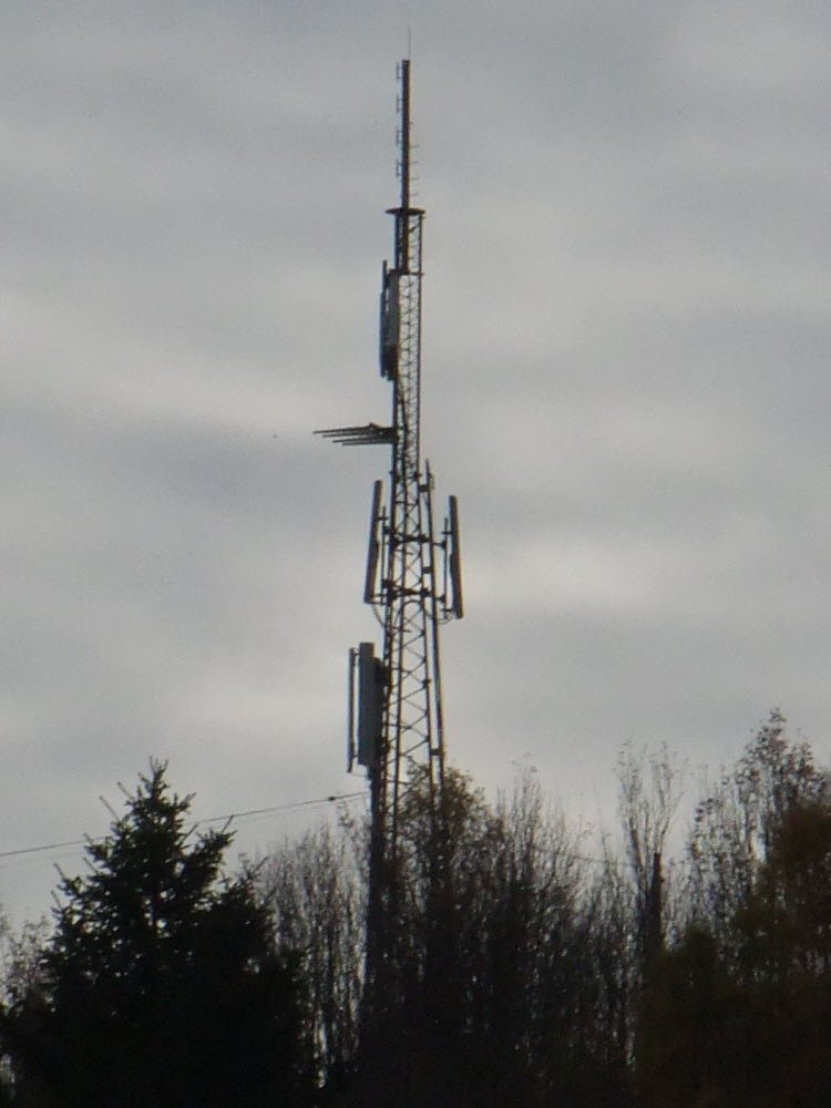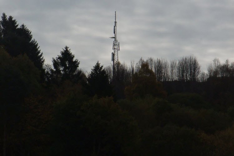 | Photos from October 2010. After a pleasant stroll and trying a few of the side roads we eventually found a path with the relay visible above the trees. Not enough time to attempt the climb towards the site. There must be a better access route, probably to the south of the village. Strathblane entered service with 3 UHF TV channels on 17th September 1982, with Channel 4 available from the launch on 2nd November 1982. DSO was on the 8th and 22nd June 2011. |