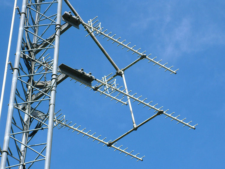 | Strathyre is a small village in a deep glen between Callendar and Lochearn. Driving through on my way to Fort William I noticed the transmitter, and wondered how it obtained its incoming signals since it is in the bottom of a fairly deep and narrow glen, miles from anywhere. My interest aroused, I took an unscheduled left turn to the fury of the bus driver behind (who was much too close anyway so it was his own damned fault) and found myself parked on a very narrow road surrounded by Highland-posh houses. Curtains twitched. (We do look a bit like gypsies it has to be said.) Climbing down from the cab with my camera I advised Hil "If anyone asks tell them we'll only be here a month or two, and the others are coming soon." The arrangements for TV reception at Strathyre are more than averagely elaborate. On high ground just above the tree line of the Strathyre Forest is Strathyre Link. This receives Black Hill and retransmits on the same channels and with the same polarisation, which I believe makes it an 'active deflector'. The transmit power is pathetically low at 0.5W. Maybe the link is solar and/or wind powered, making higher transmit powers difficult to sustain. From the village I think I could see a solar power array up there near the link mast, but even for mb21 I didn't feel like staggering all the way up the mountain just to confirm it. Low transmit power would also help avoid feedback. Re-transmitting the RF as received is presumably another way of saving power, since the active equipment need consist of nothing much except amplifiers, I suppose. If the quoted figure of 0.5W is ERP (in other words, if it takes into account the gain of the transmitting aerials) the actual RF on the coax feeding the aerial must be pretty miniscule. Unfortunately this half a watt of RF seems barely adequate for the purpose, hence the elaborate stacked and bayed yagis used to receive the signal down in the glen. I parked next to the mast in the village and found that a log periodic with a masthead amplifier produced a very snowy picture from the link - quite inadequate for rebroadcast, but the output of Strathyre is clean, so the elaborate receive array is obviously doing its job well. All the more surprising then, that it appears to be off beam! Strathyre went into service in the mid 1990's. DSO was on the 8th and 22nd June 2011. |