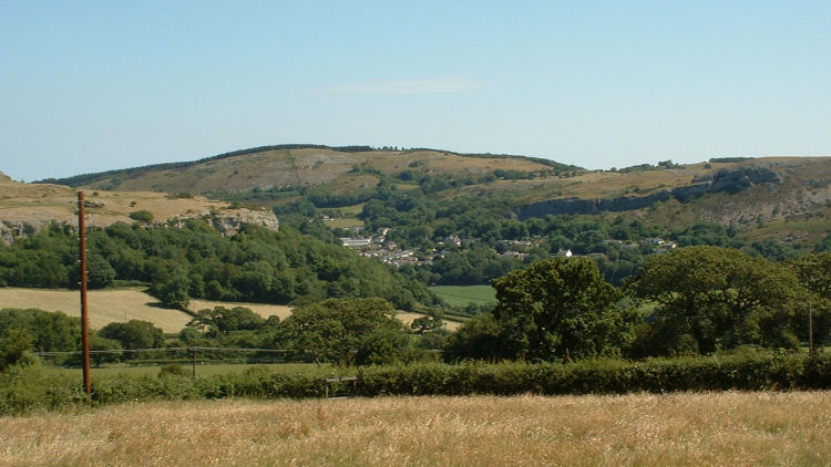| The "view from" photo is of the village of Rhyd-y-Foel, as Betws-yn-Rhos isn't actually visible from the foot of the mast. I was investigated by a pair of friendly Labradors, and the lady whom I asked whether I could take some photos from her drive must have thought I was mad! |