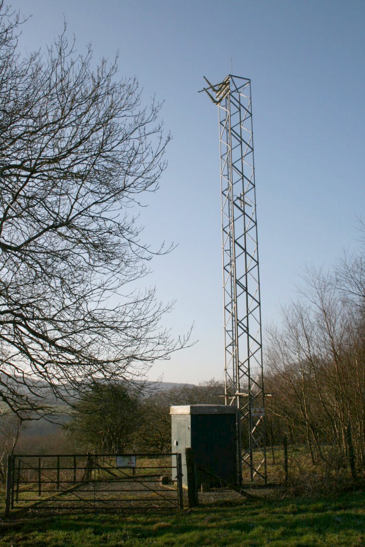 This TX is a small, unassuming tower on a high point overlooking the small town of Efail-Fach. The access track is via private property, so I parked up as close as I could and used a bridleway and public footpath that happily runs right past the site.